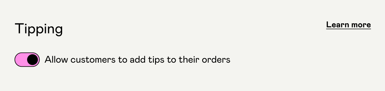 - Toggle on "Allow customers to add tips for their orders"